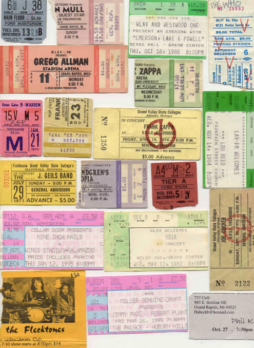 THE STORY BEHIND BUCKWHEAT AND ALLEN E. DOWS We knew each other in high school and were very close friends.   I used to set in back of her in art class and tie ribbons in her hair, calling her Buckwheat, and I have ever since.  I used Allen E. Dows as my pen name on the school paper.  She was engaged to someone else and I let her go.  We always thought of each other over those many years we were apart.   Finally we got together!  As for the background of is page,  I just wanted to share some of my concert ticket stubs below!
